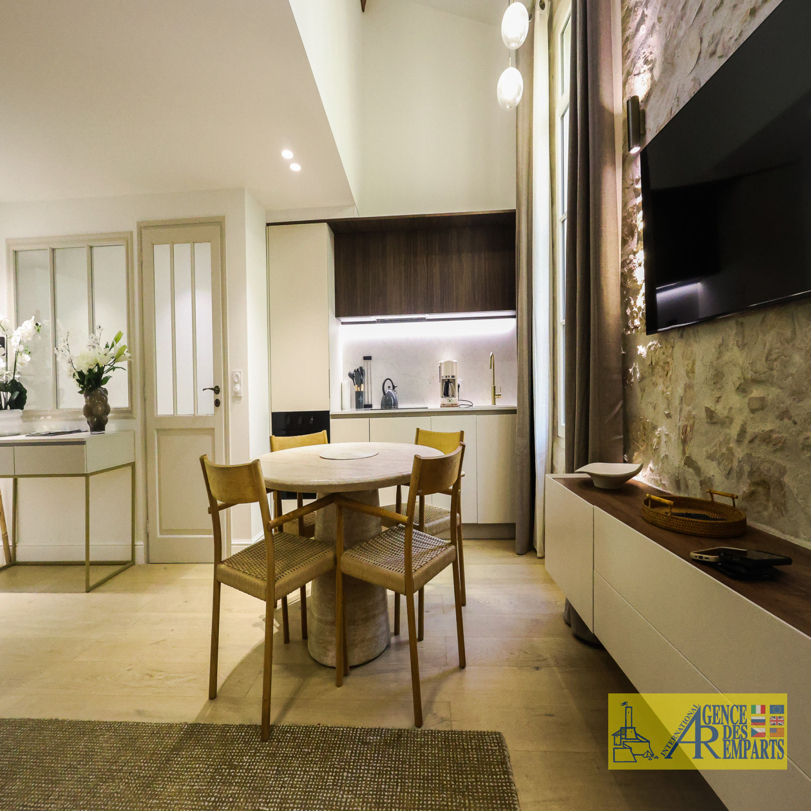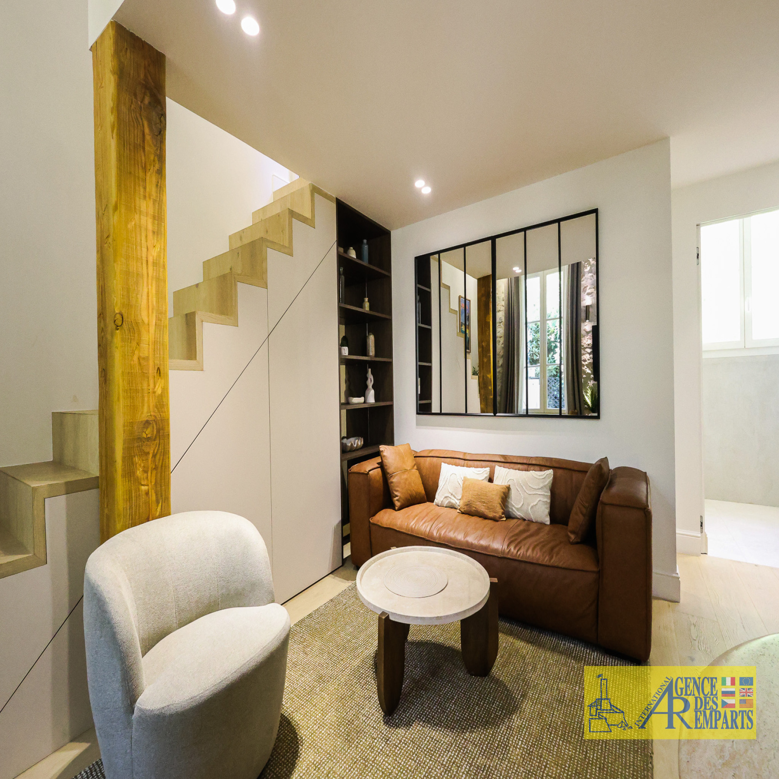 Il se compose d’un séjour chaleureux avec une cuisine américaine entièrement équipée, idéale pour les amateurs de convivialité et de design contemporain. Une mezzanine vient compléter l’espace, apportant du volume et un charme supplémentaire. Deux salles d’eau aux finitions soignées viennent parfaire ce bien rare.