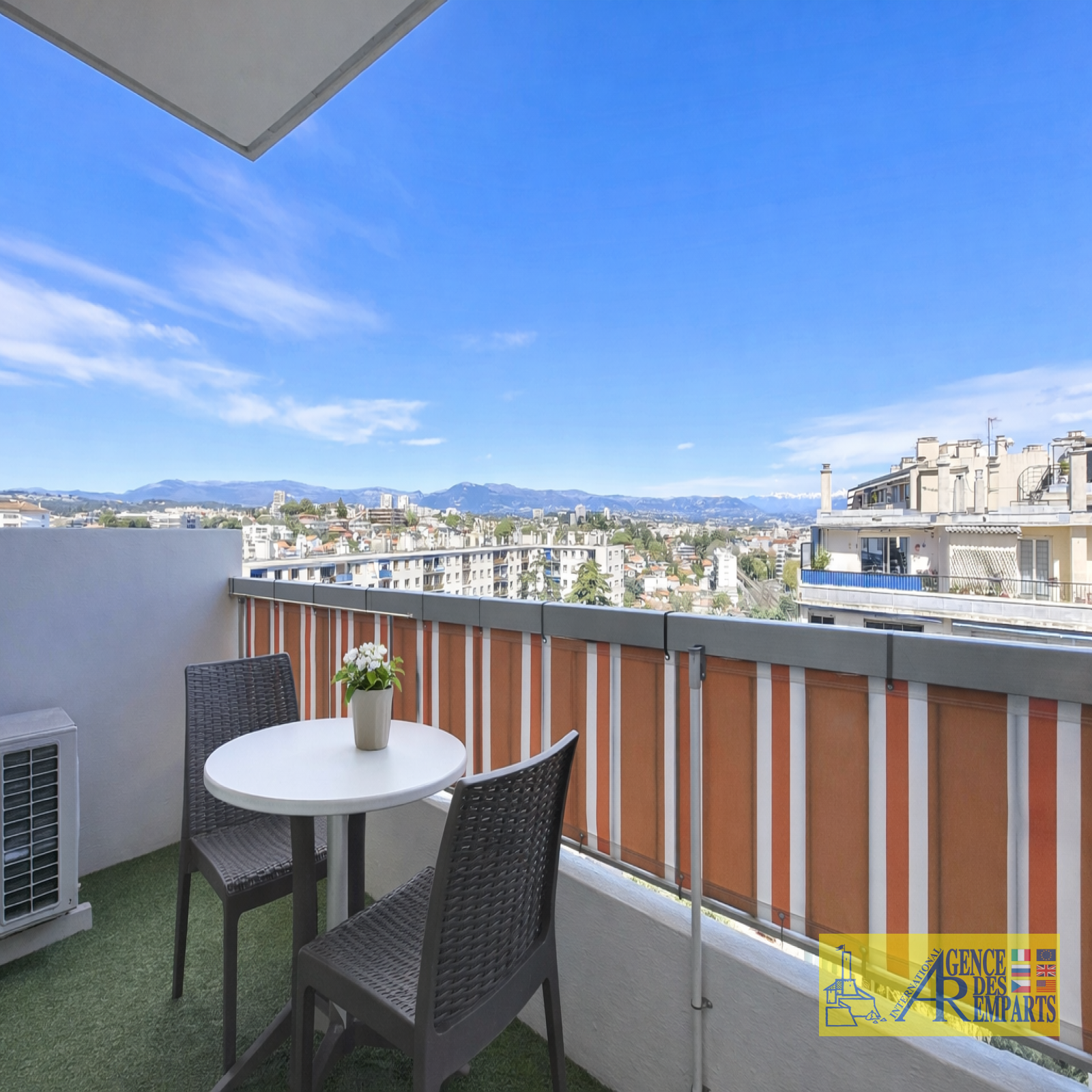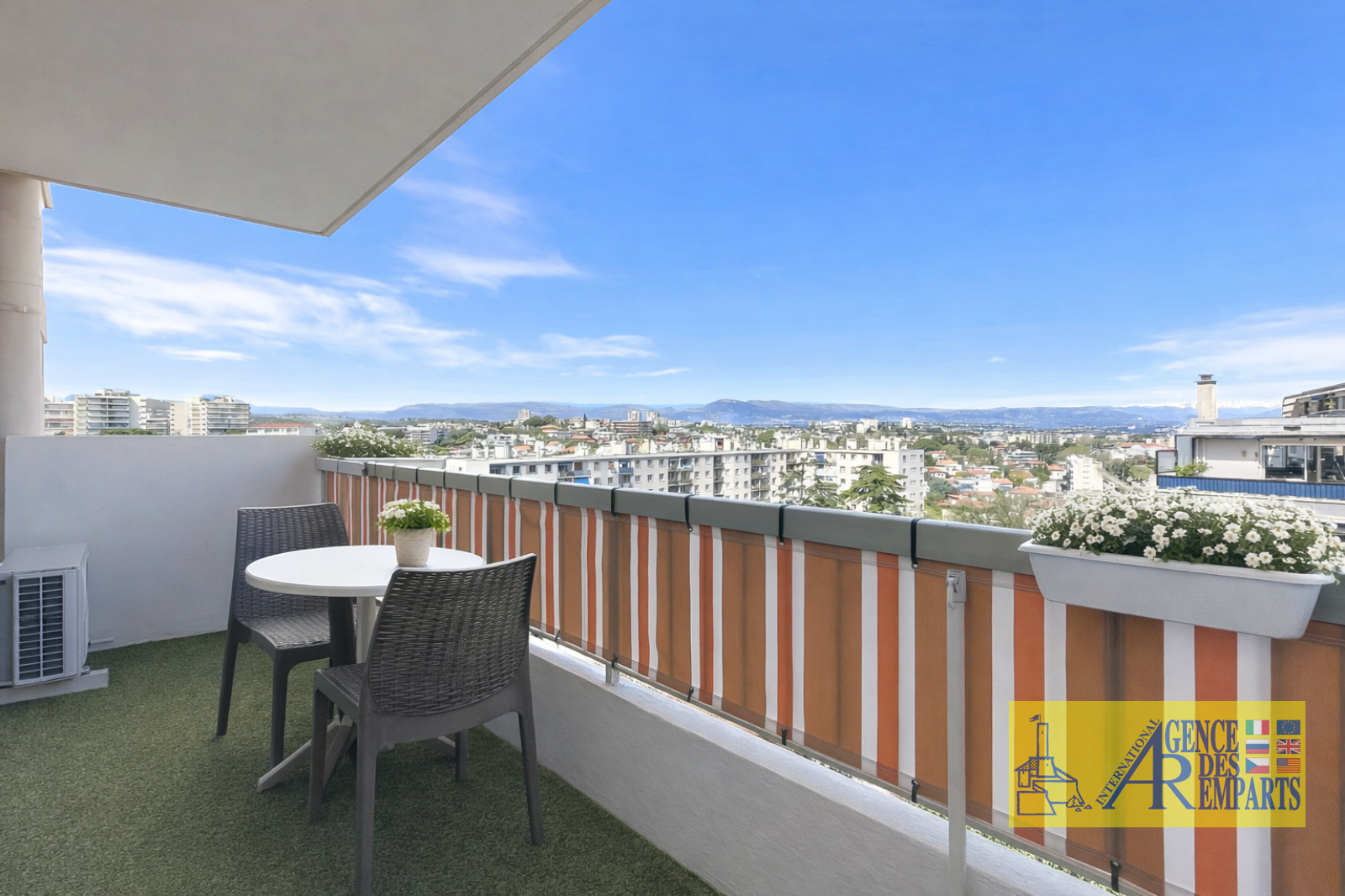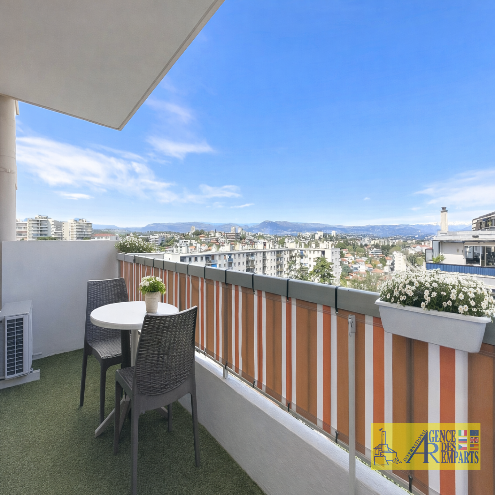 Baigné de lumière, cet appartement séduit par sa belle terrasse offrant une vue dégagée sur les montagnes, agrémentée de deux échappées mer, idéale pour profiter d’un agréable extérieur en hauteur et d’une belle ouverture sur l’horizon.