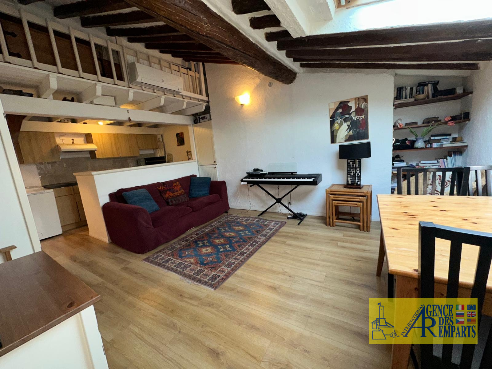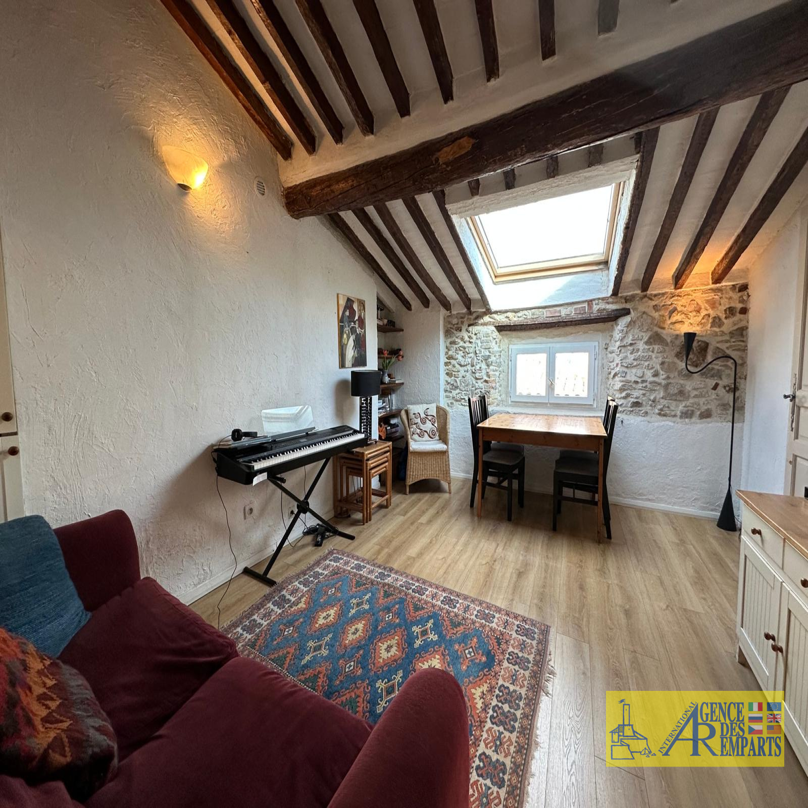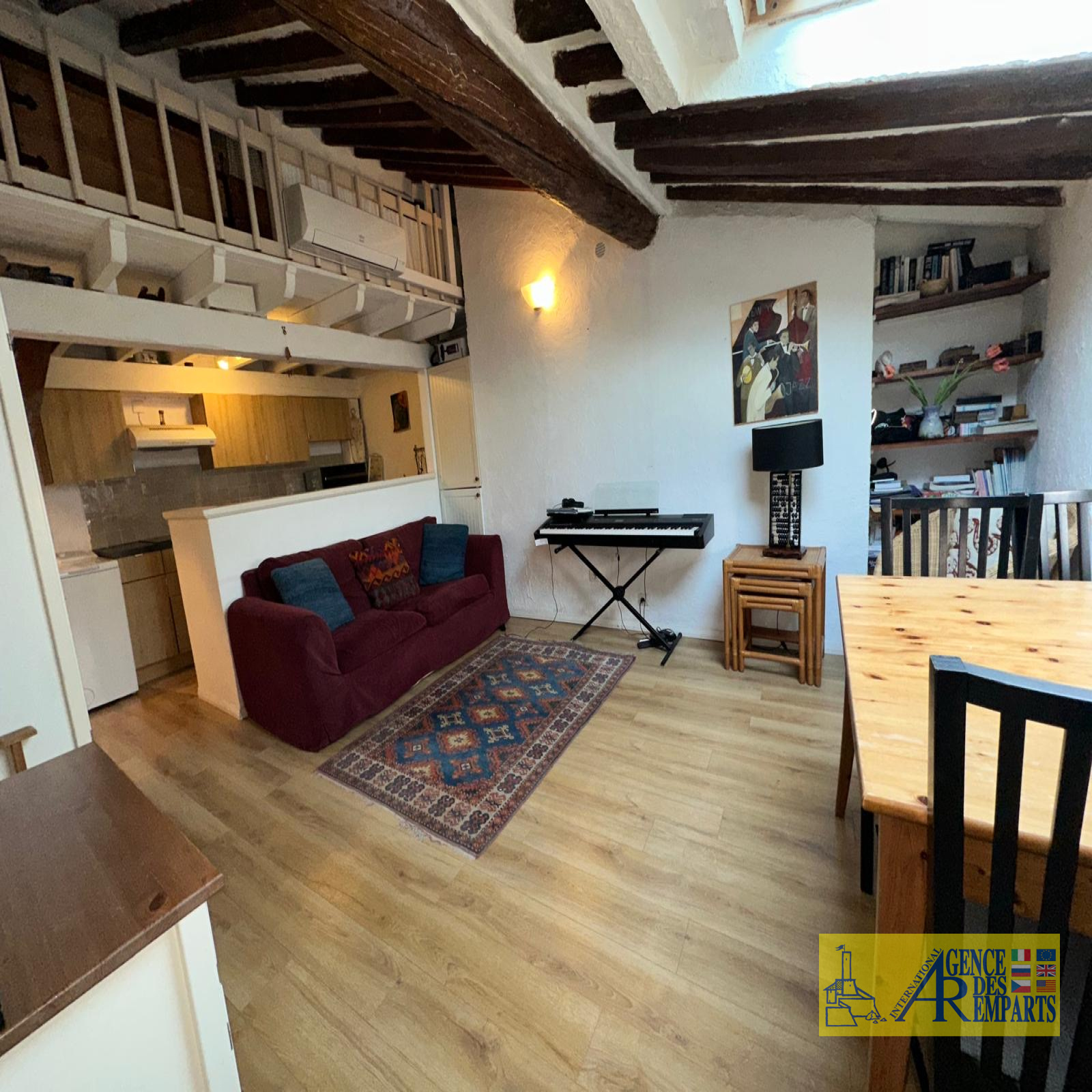 L’appartement, plein de caractère, bénéficie de poutres apparentes et d’un plafond mansardé qui lui confèrent une atmosphère chaleureuse. Il se compose d’une agréable pièce de vie avec cuisine ouverte, d’une chambre de bonne taille, d’une salle de bains, ainsi que d’une mezzanine cosy pouvant accueillir un couchage supplémentaire pour les invités.