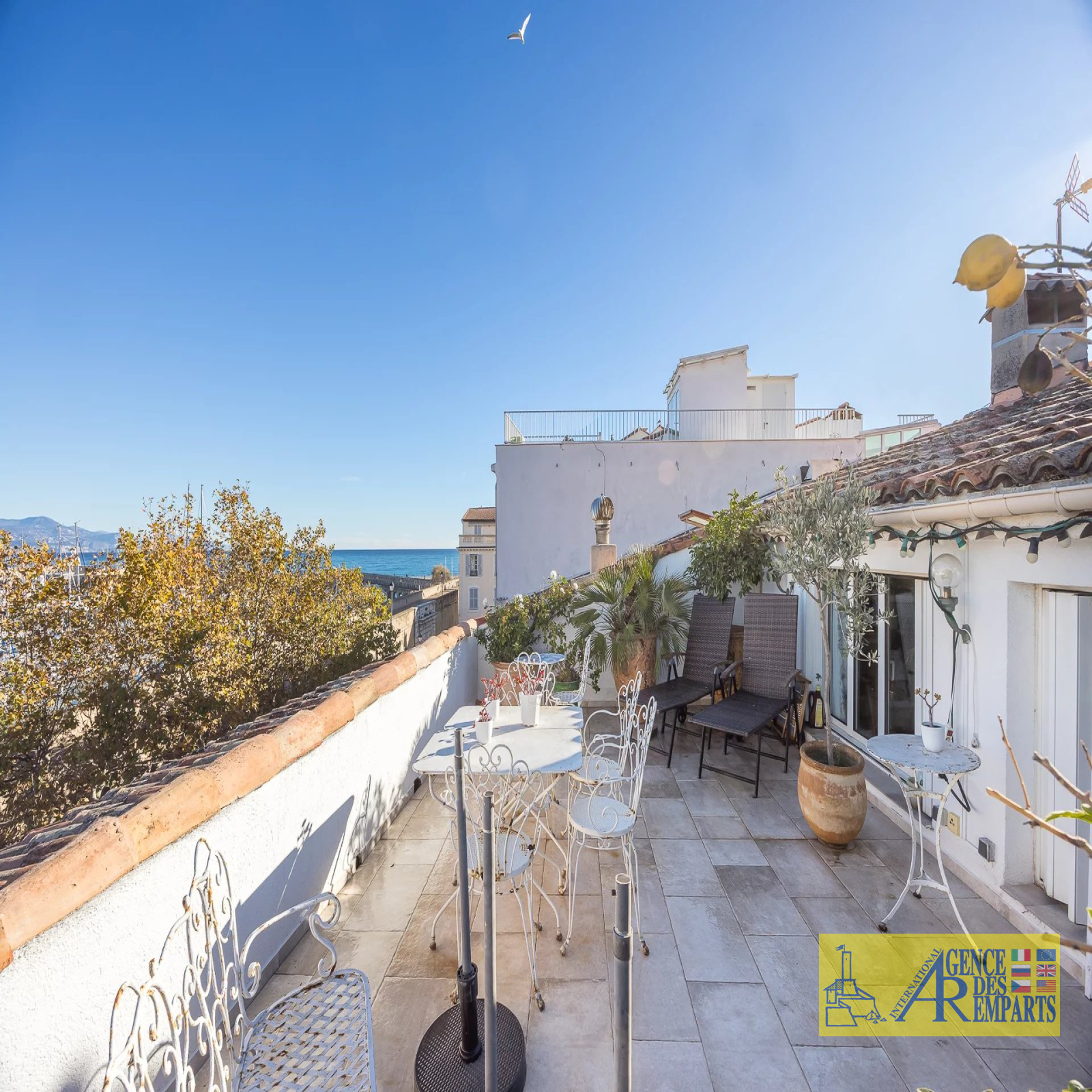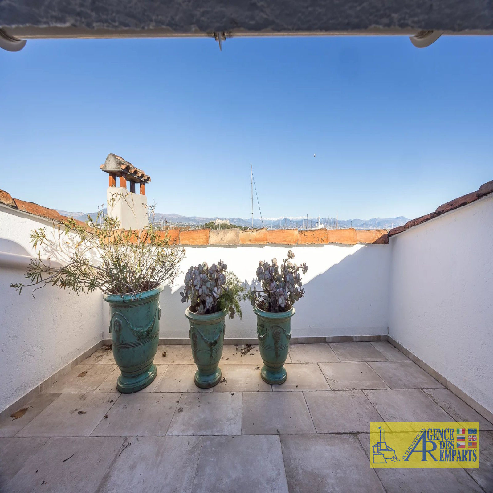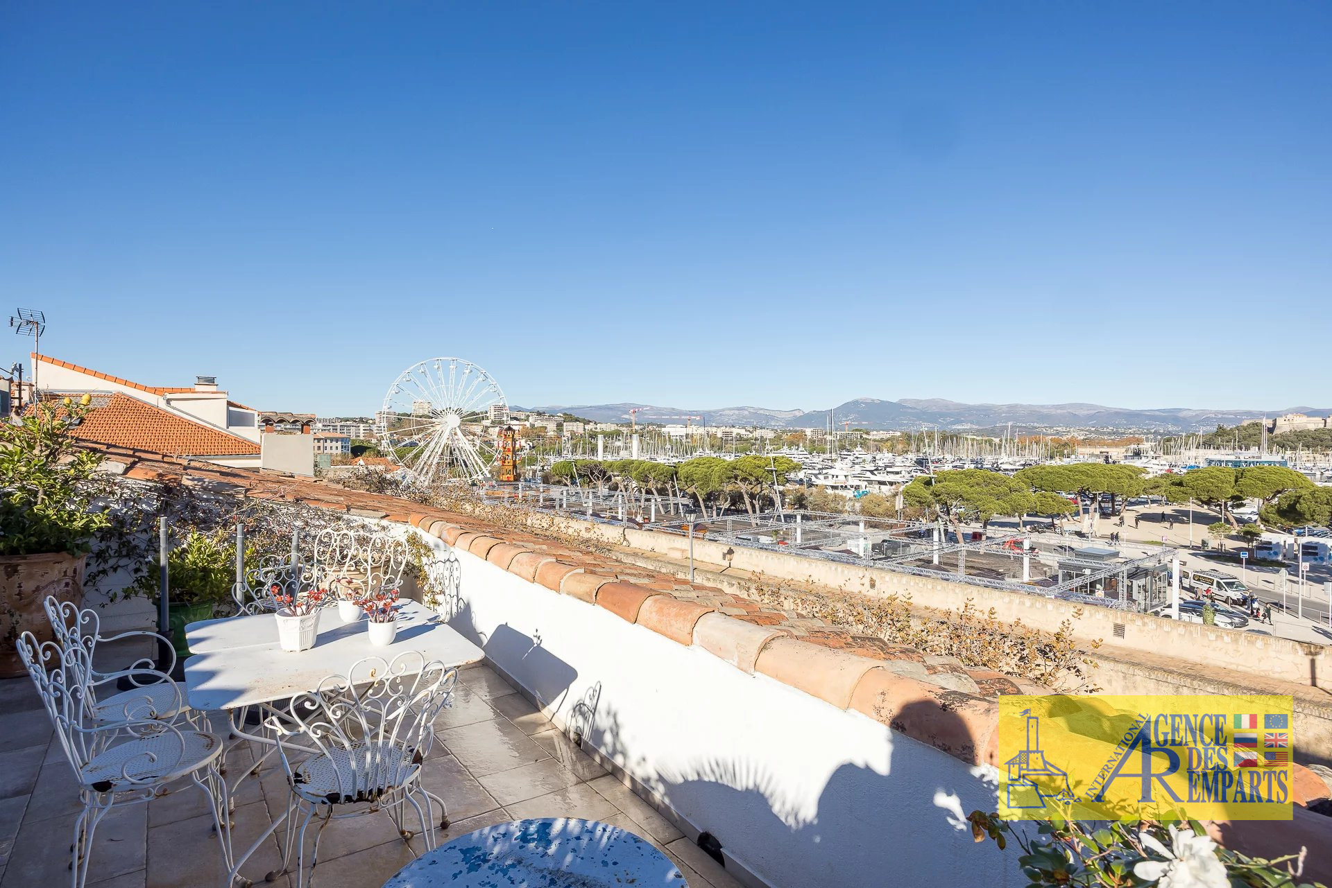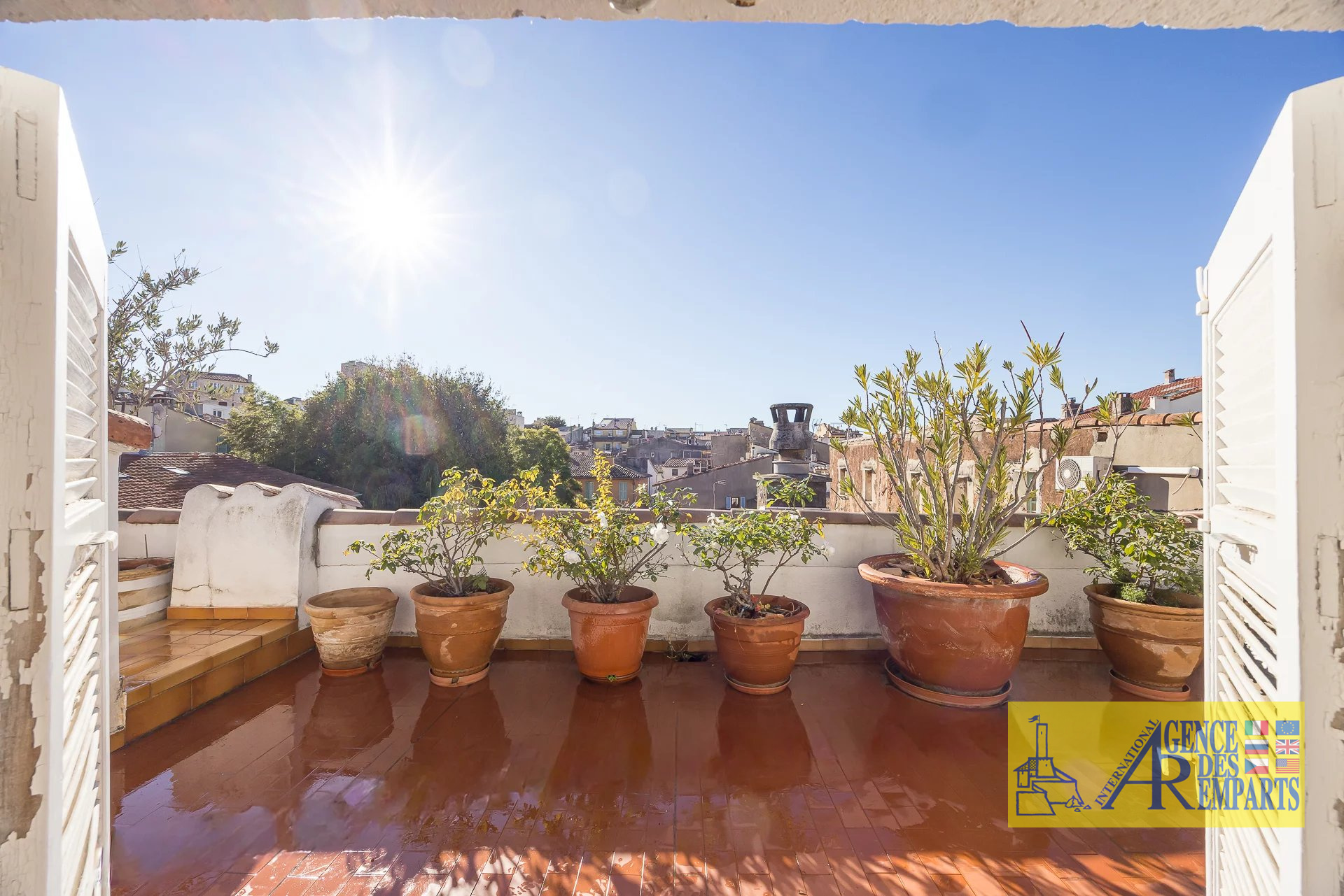 Situé au troisième et dernier étage d’un petit immeuble de charme, il dispose de plus de 100 m² de surface habitable et s’ouvre sur 75 m² de terrasses offrant des vues absolument exceptionnelles sur les remparts, les montagnes, le Fort Carré et la grande roue.