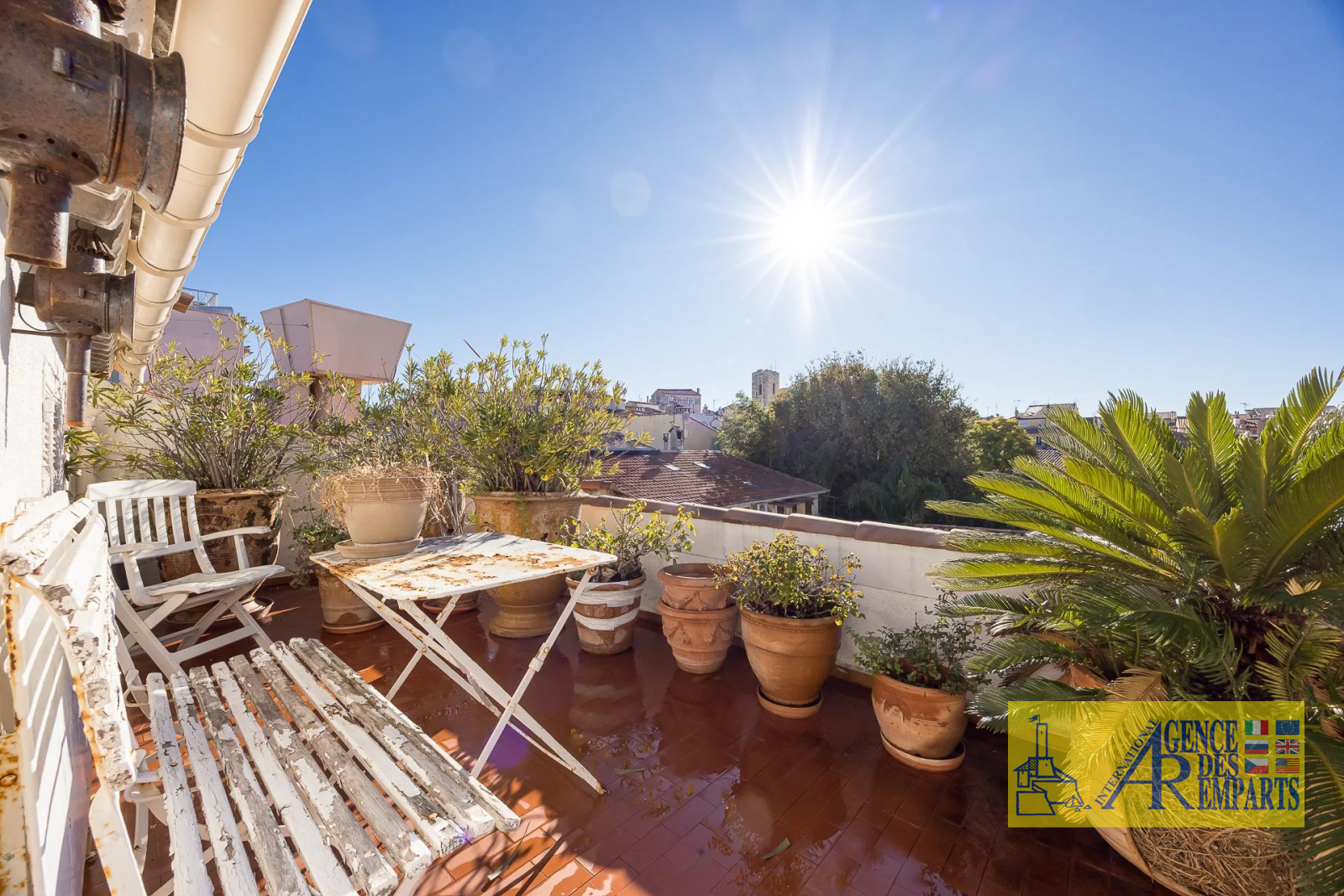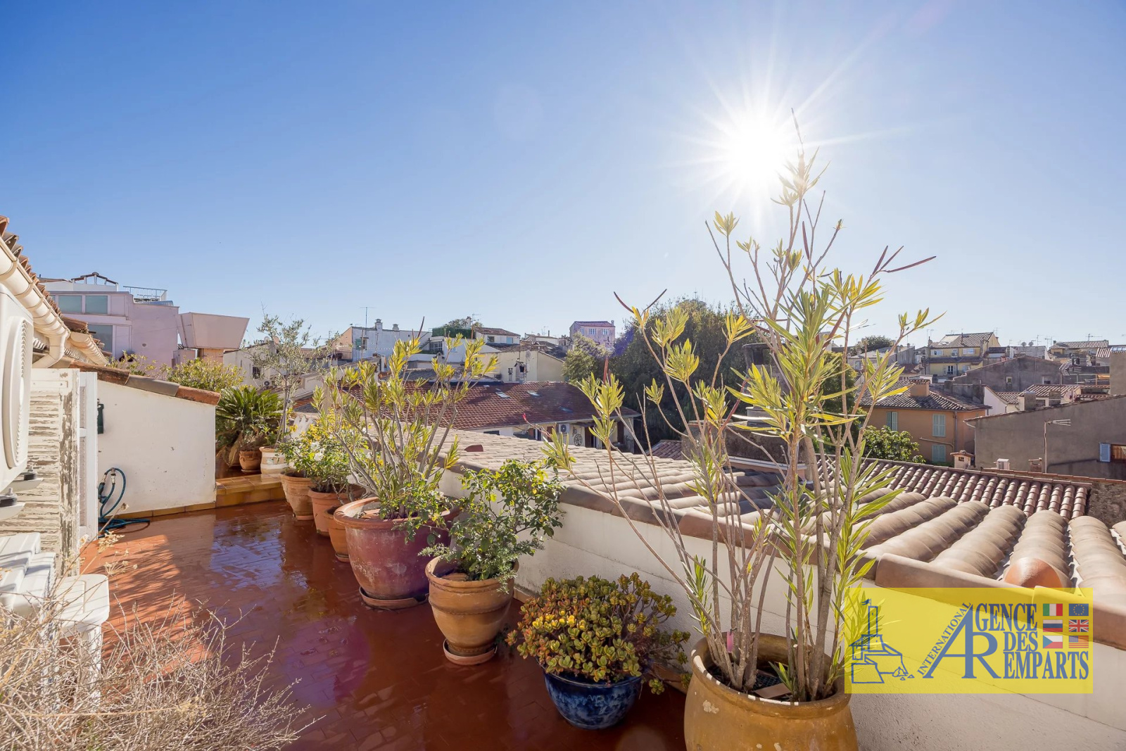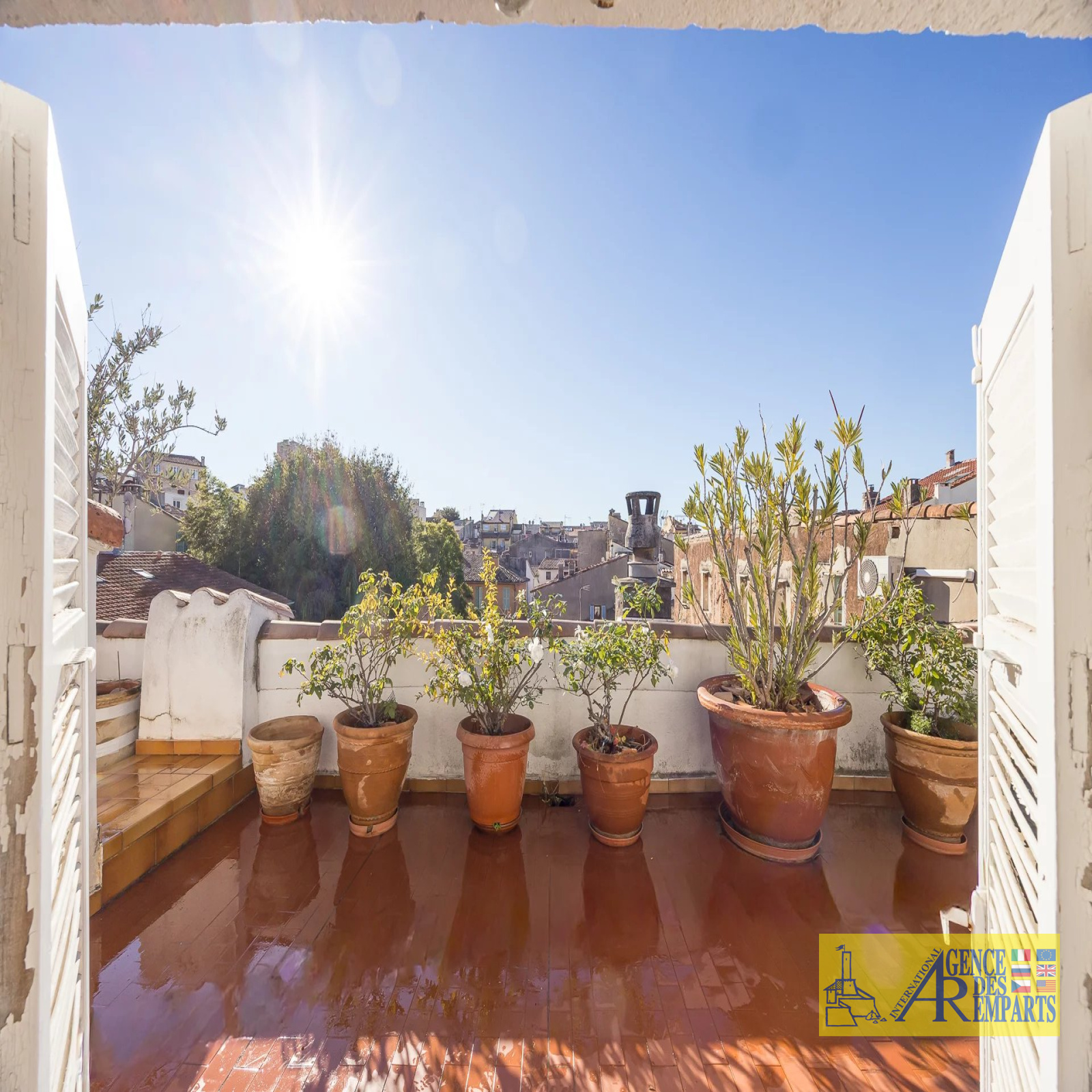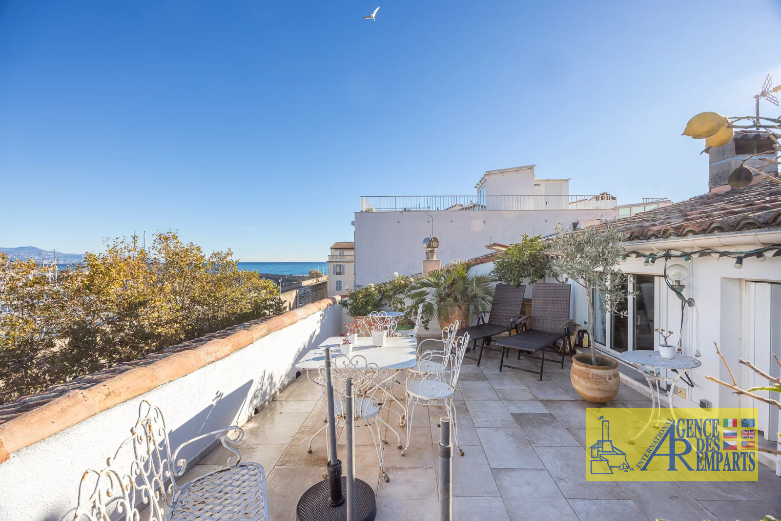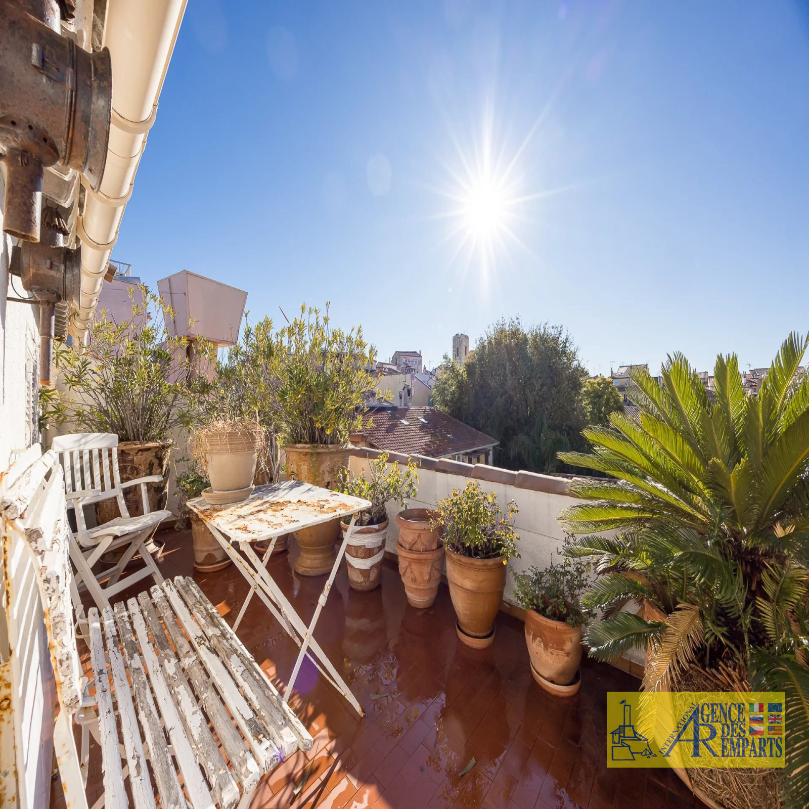 Situé au troisième et dernier étage d’un petit immeuble de charme, il dispose de plus de 100 m² de surface habitable et s’ouvre sur 75 m² de terrasses offrant des vues absolument exceptionnelles sur les remparts, les montagnes, le Fort Carré et la grande roue.