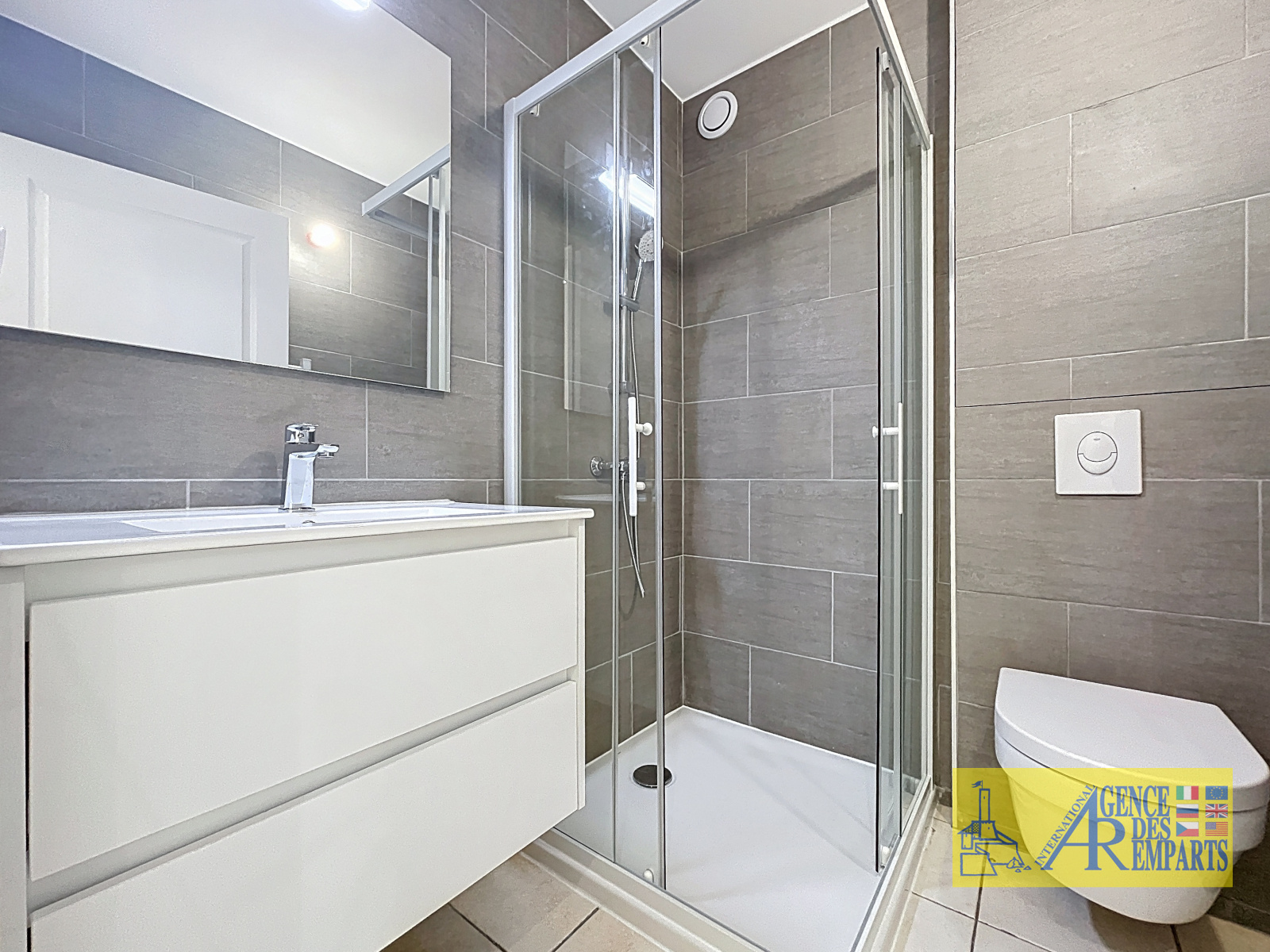 Une salle d’eau contemporaine ainsi qu’un WC complètent le confort de ce studio, pensé pour un usage pratique au quotidien ou en séjour. Les finitions sont soignées, les volumes bien optimisés, et l’ensemble dégage une atmosphère chic et apaisante.