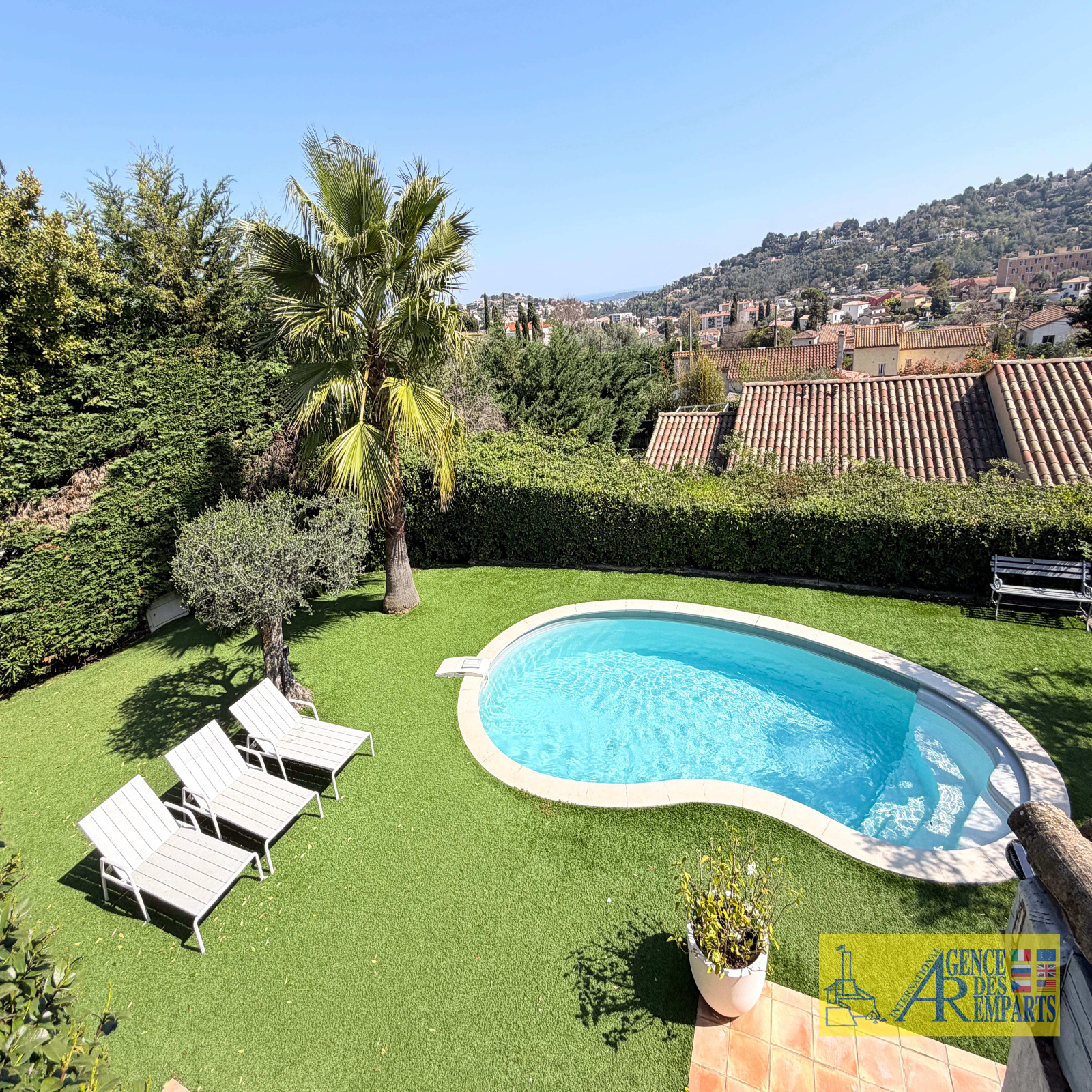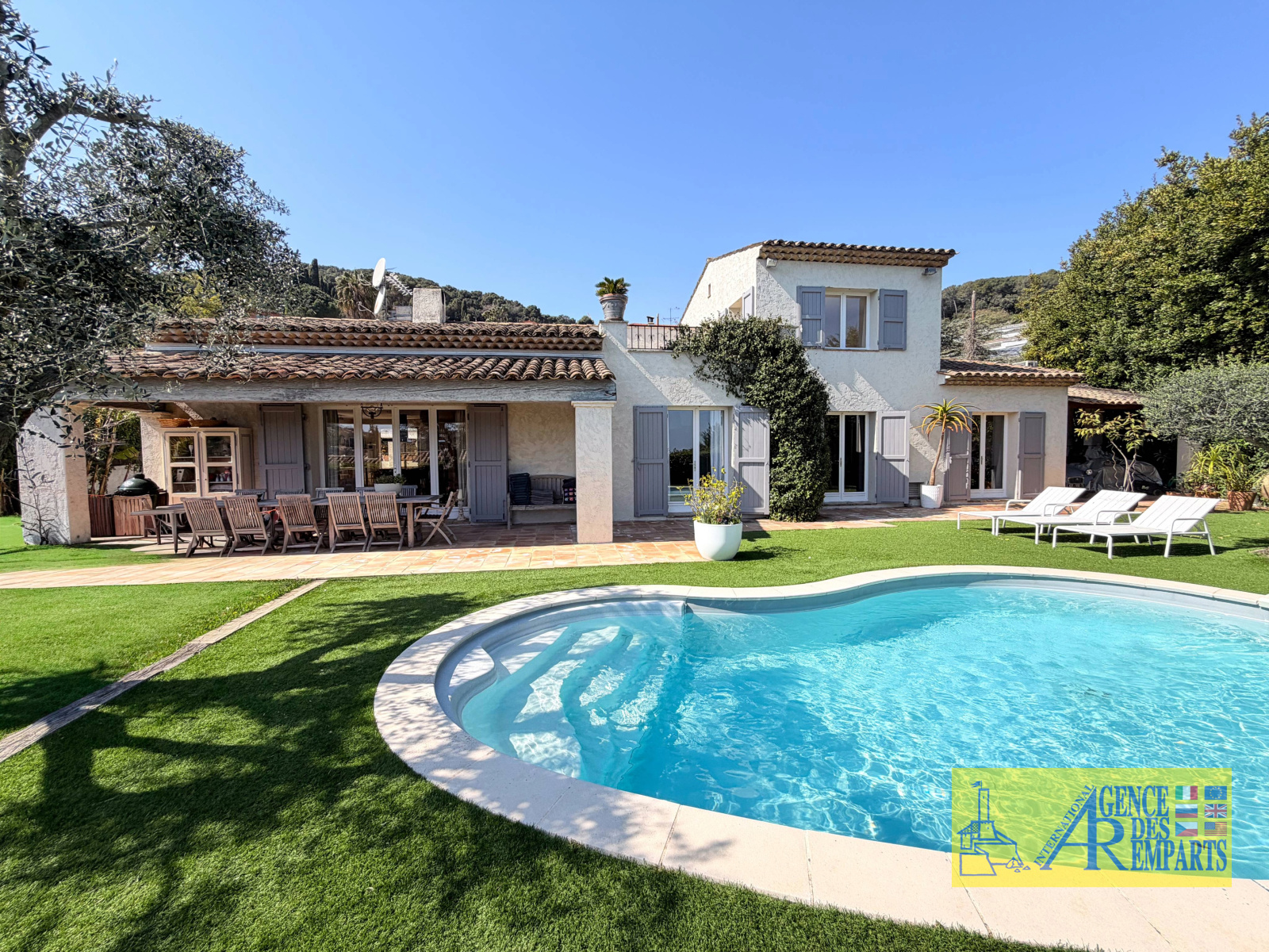 Implantée sur un terrain paysager de 945 m², joliment complanté d’essences méditerranéennes, la propriété bénéficie d’un environnement résidentiel recherché, alliant calme, verdure et proximité des commodités.