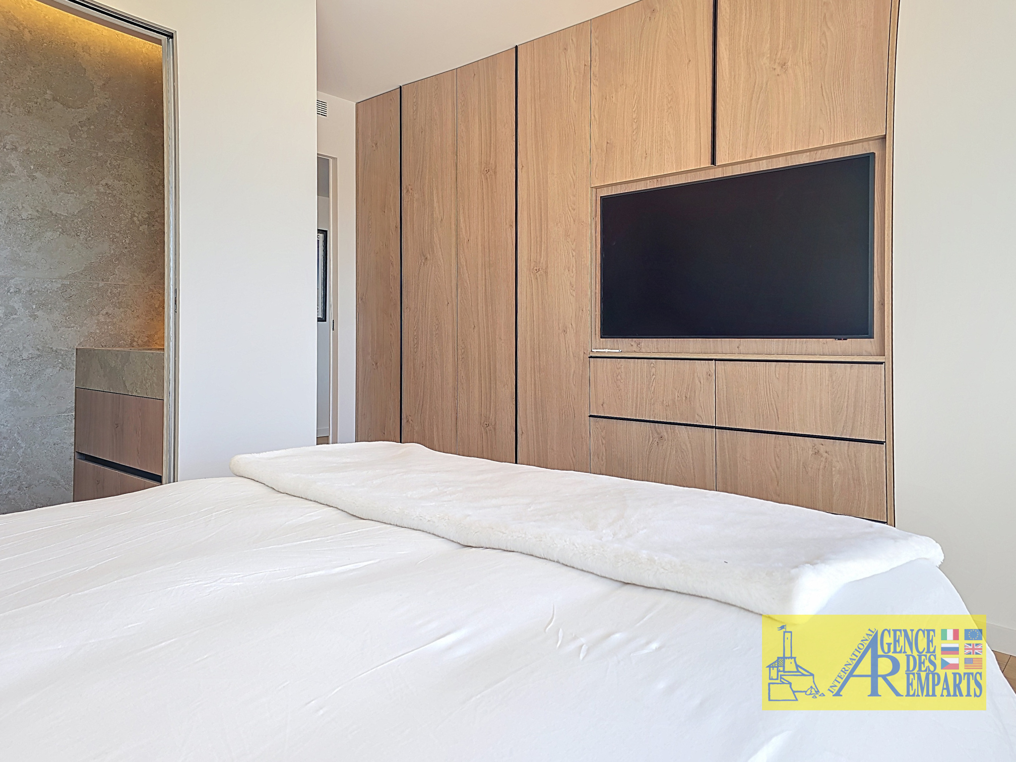 L’espace nuit accueille deux chambres en suite, chacune disposant de sa propre salle de bains, dans un esprit de confort absolu et d’intimité préservée. L’une profite d’un accès direct à la terrasse principale ainsi que d’une magnifique vue mer panoramique, prolongeant la sensation d’ouverture et de privilège offerte par les pièces de vie. L’autre s’ouvre sur une seconde terrasse, plus confidentielle, côté montagne.